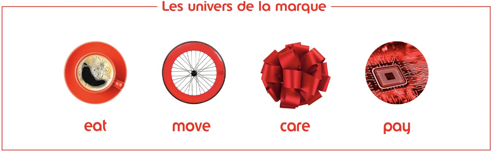 Nous avons proposé une campagne 100 % digitale déployée en campagnes sponsorisées sur des médias ciblés ainsi que sur les réseaux sociaux. Autour du concept de la vie en rouge, elle s’est déployée en deux sessions et en 4 thématiques – pay, care, move, eat – qui démontrent l’inscription d’Edenred dans les macro-tendances. Une campagne générique complétait le dispositif pour valoriser la contribution du Groupe à la société autour de sa raison d’être « for good ».